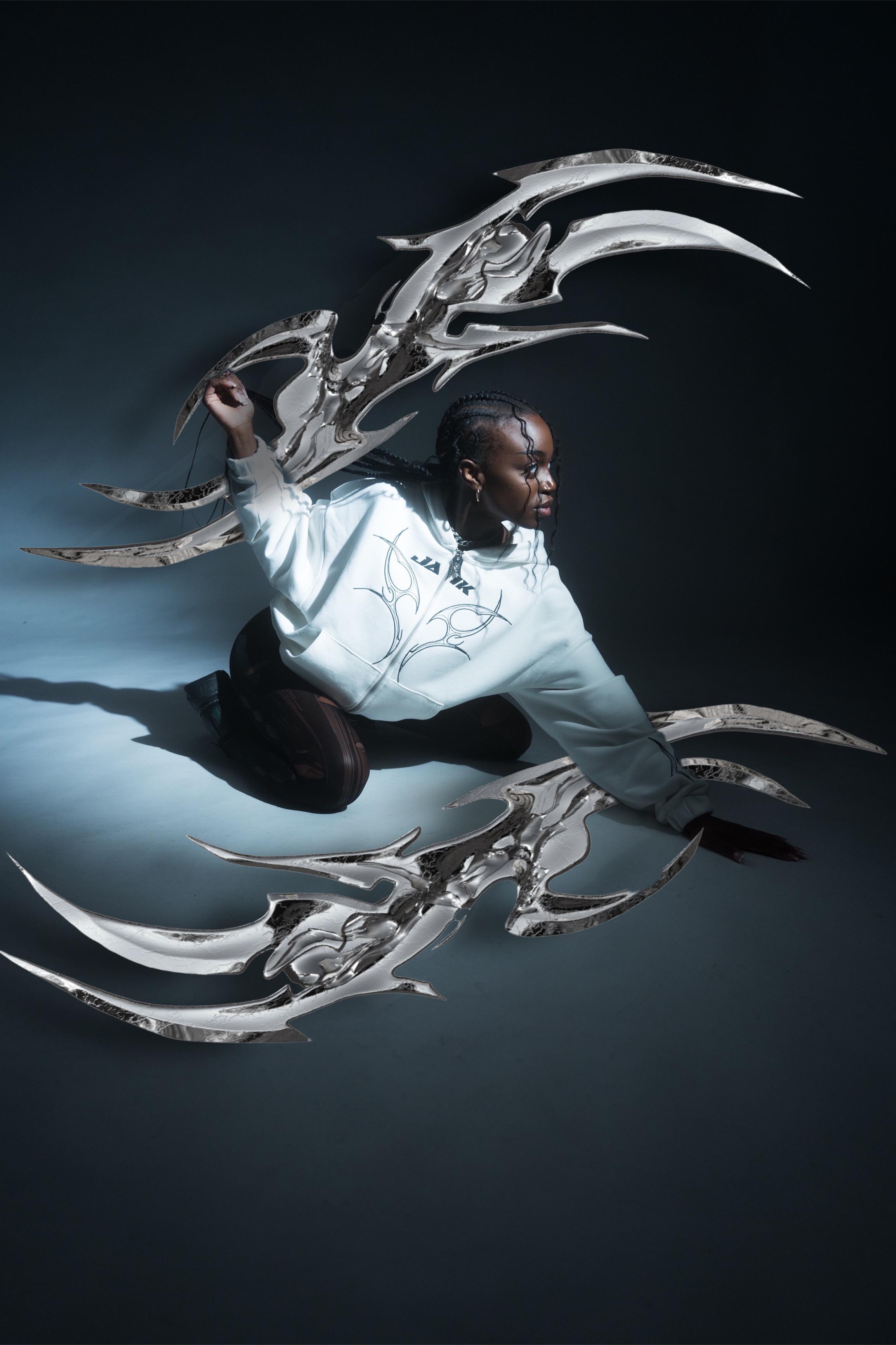 Dieser Reißverschluss ist eine faszinierende Fusion, die die Atmosphäre eines typischen Raver-Designs mit Alltagskleidung verbindet